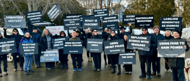 Help us demonstrate what fascism looks like. We’ll have signs for 20 participants, but if we have more than 20, please join us with a sign! 10 am, along the public sidewalks across from Dunkin Donuts.